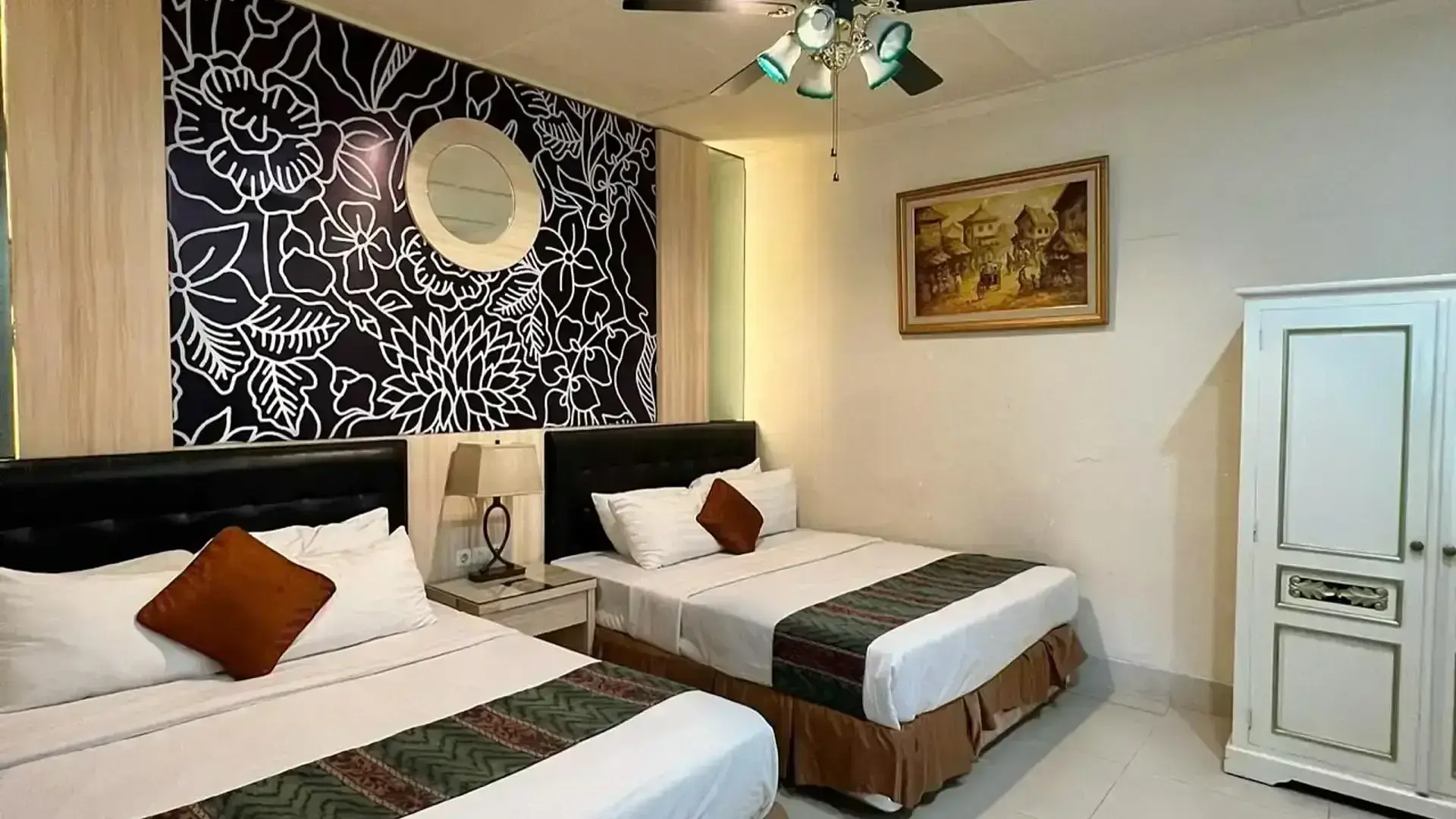 Spacious 45 sqm Anggrek Family Room at Hotel Indah Palace Tawangmangu offers a spacious and comfortable accommodation perfect for families. It features three bedrooms, a living room, and a dining area, providing ample spaceforrelaxationandtogetherness.