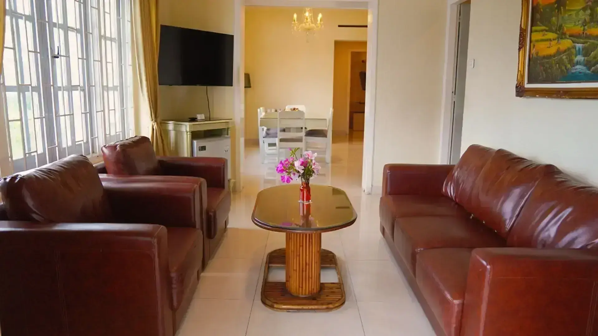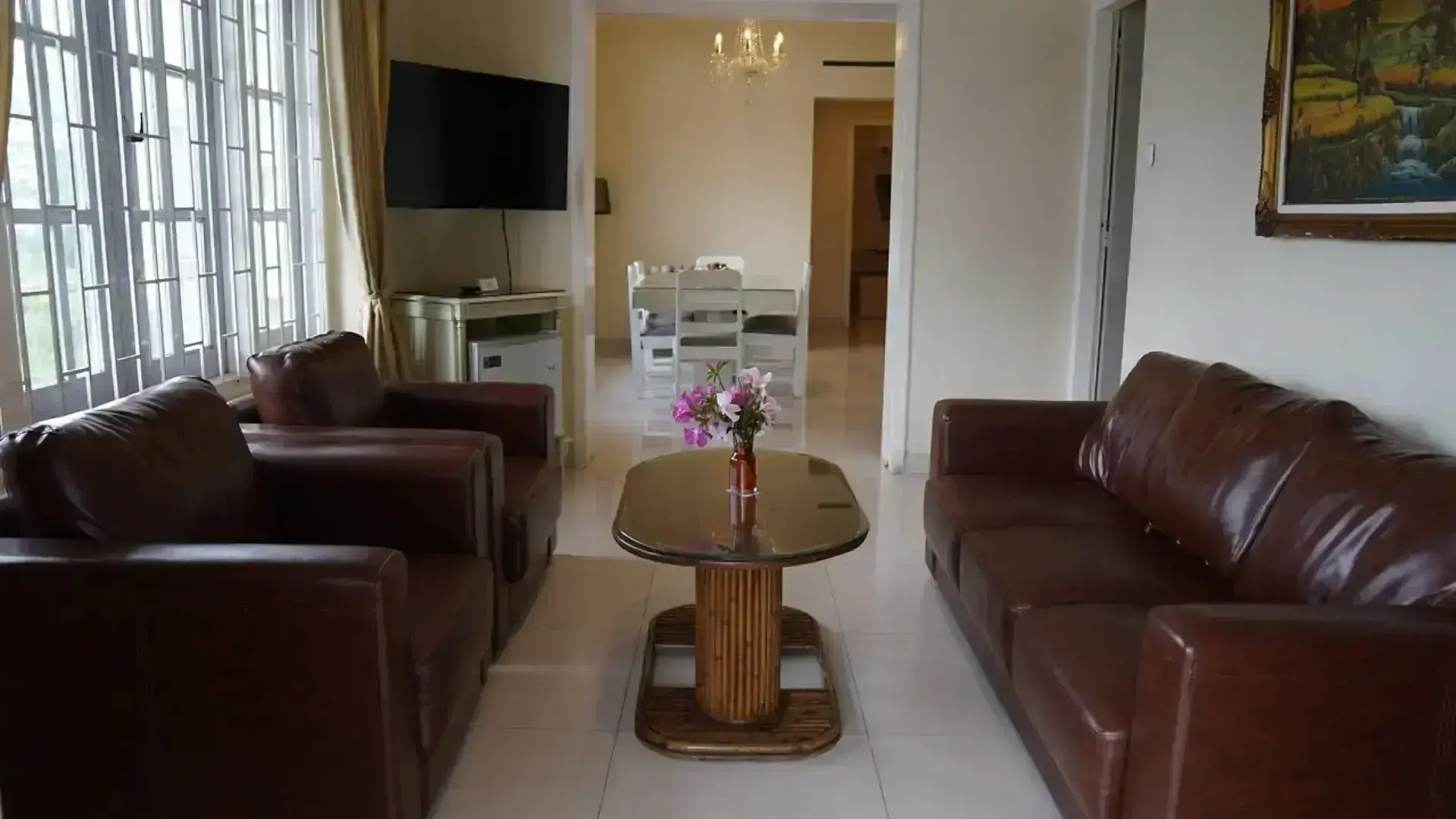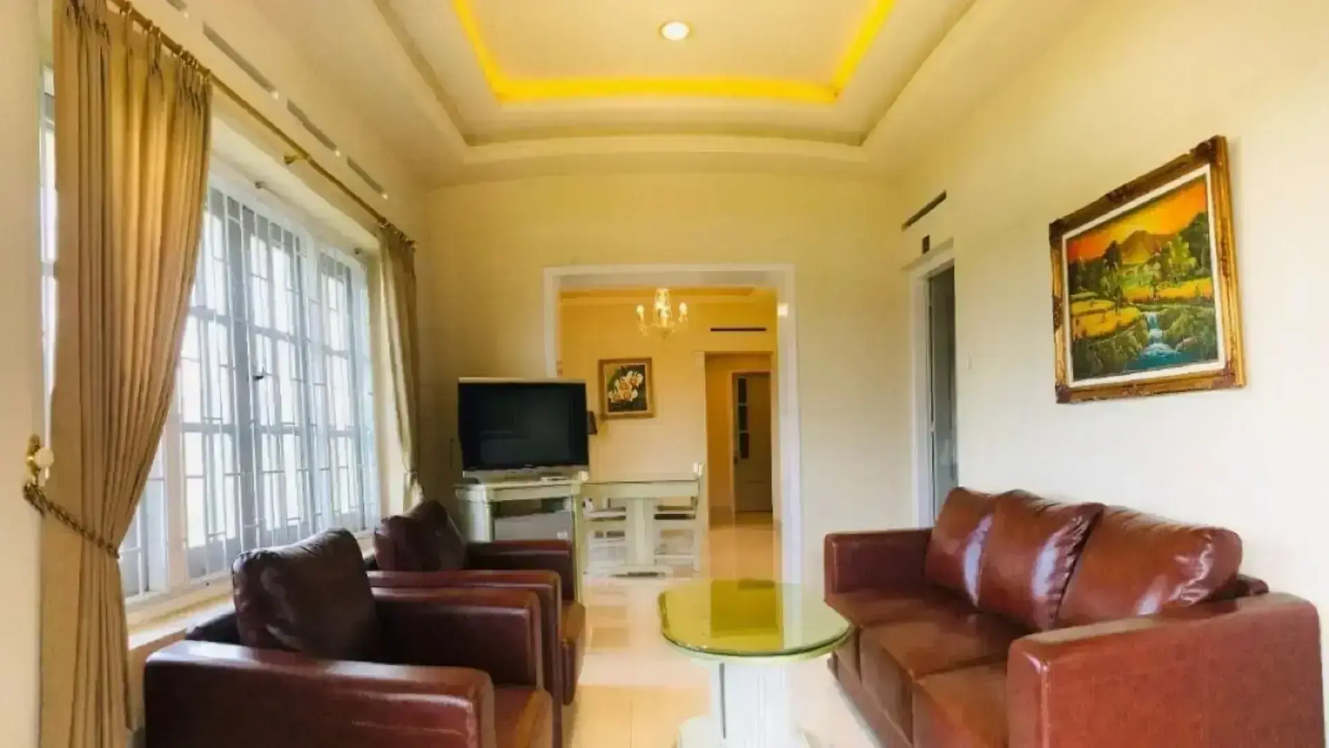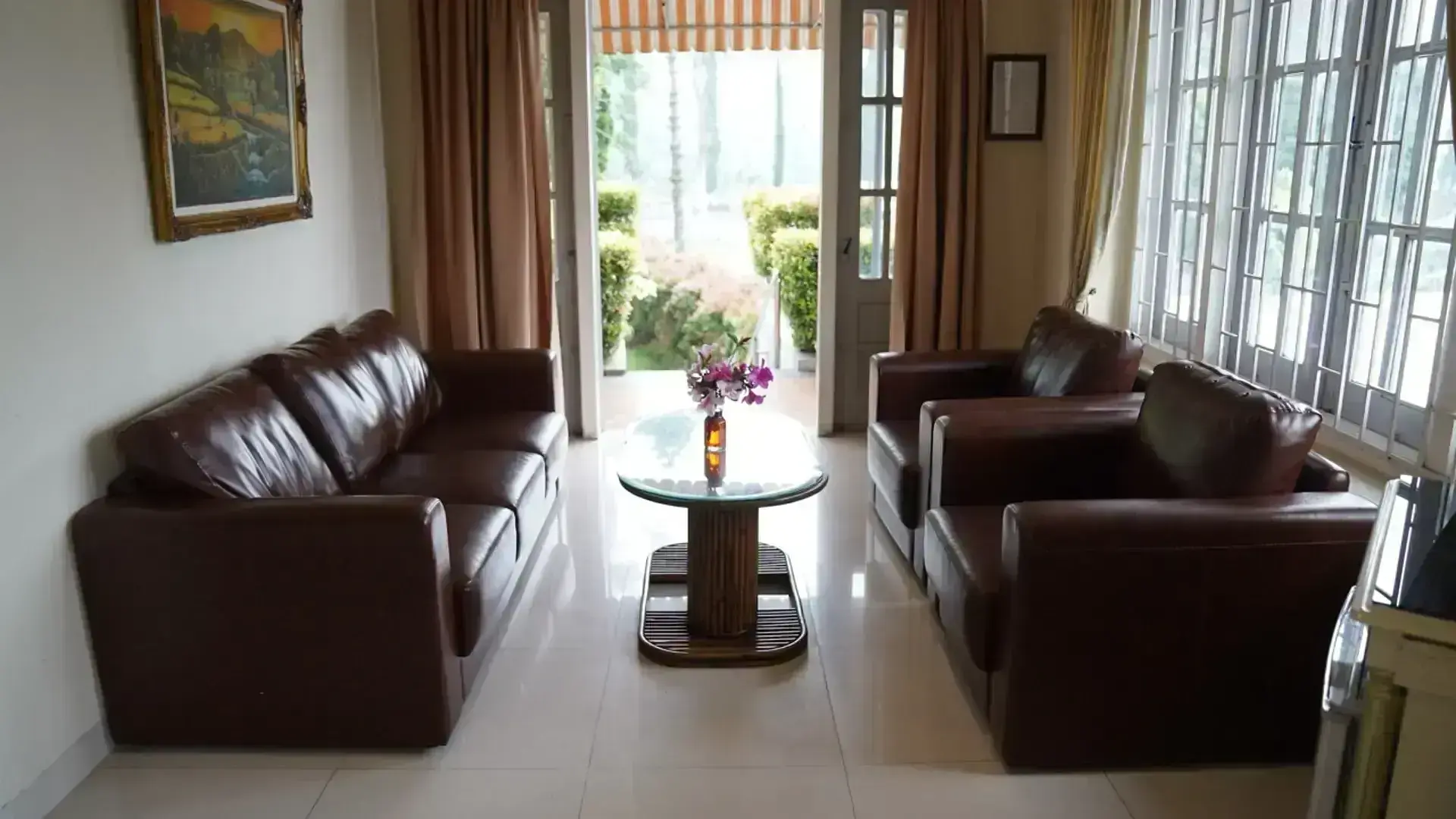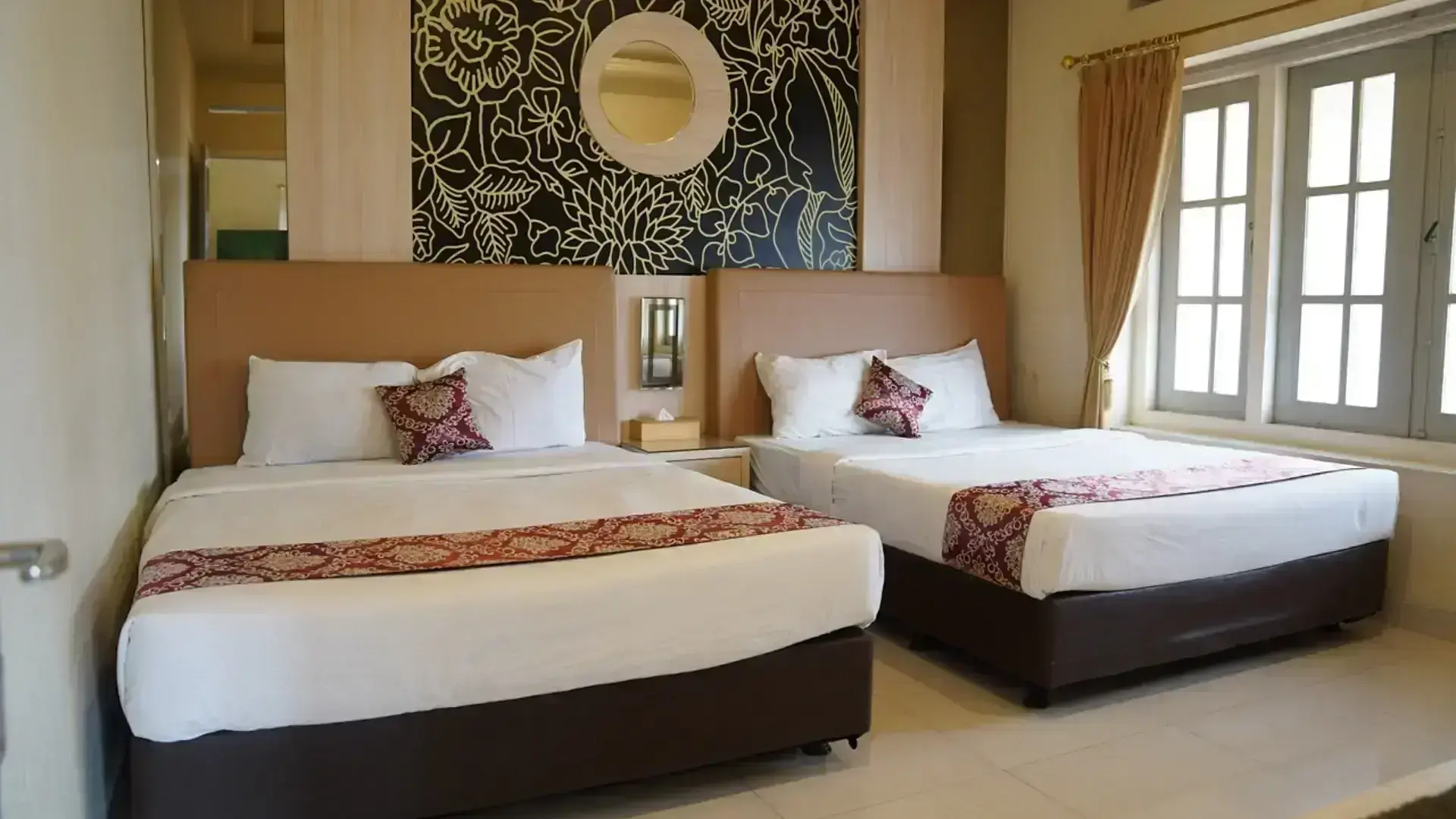 Spacious 45 sqm Anggrek Family Room at Hotel Indah Palace Tawangmangu offers a spacious and comfortable accommodation perfect for families. It features three bedrooms, a living room, and a dining area, providing ample spaceforrelaxationandtogetherness.
